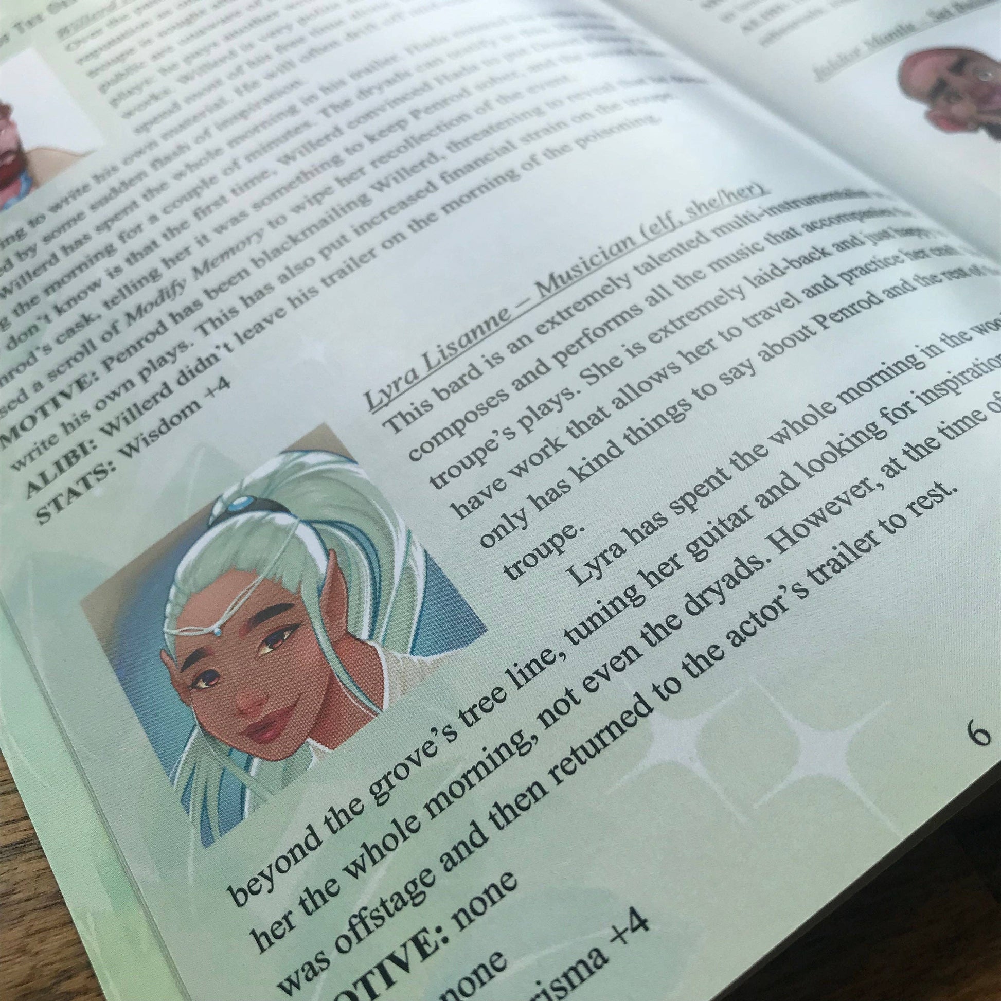 Macdeath is a 5th edition murder mystery with a difference. Set in the FeyWild your players must perform a play for The Queen of The Summer Court and then solve the heinous murder of a cast member. To succeed in this one shot adventure, they must entertain the queen.