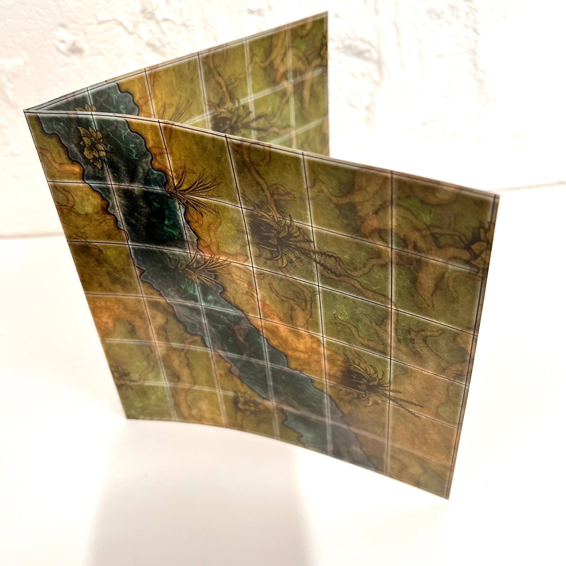 * A set of 7 polyhedral swamp-themed dice (they may vary from what is pictured), d4, d6, d8, d12, d10, d% and d20.
